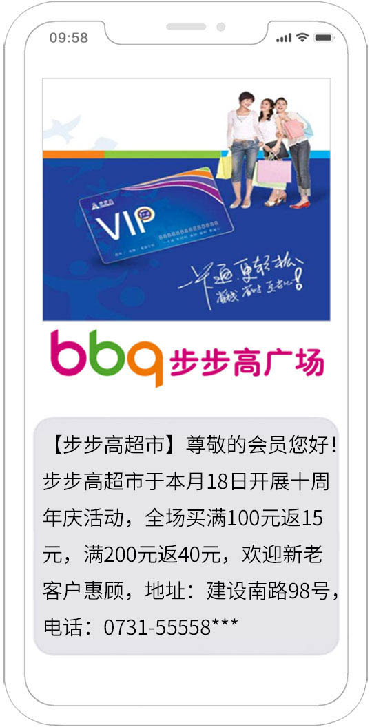 • 充值58元可群發828條短信